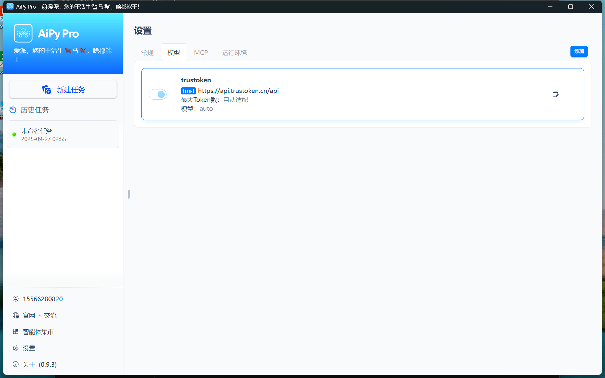 AiPy Pro现在默认只支持Trustoken上的模型,以及一些主流的大厂的模型,那如果要配置本地内网部署的模型,该怎么配,我找到方法了。