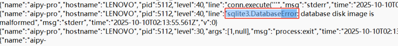 这是因为本地数据库文件损坏导致AiPy无法启动,可以尝试删除C:\Users\用户名\AppData\Roaming\aipy-pro\aipy,查看是否正常,如果还有问题删除C:\Users\用户名.aipyapp\目录。